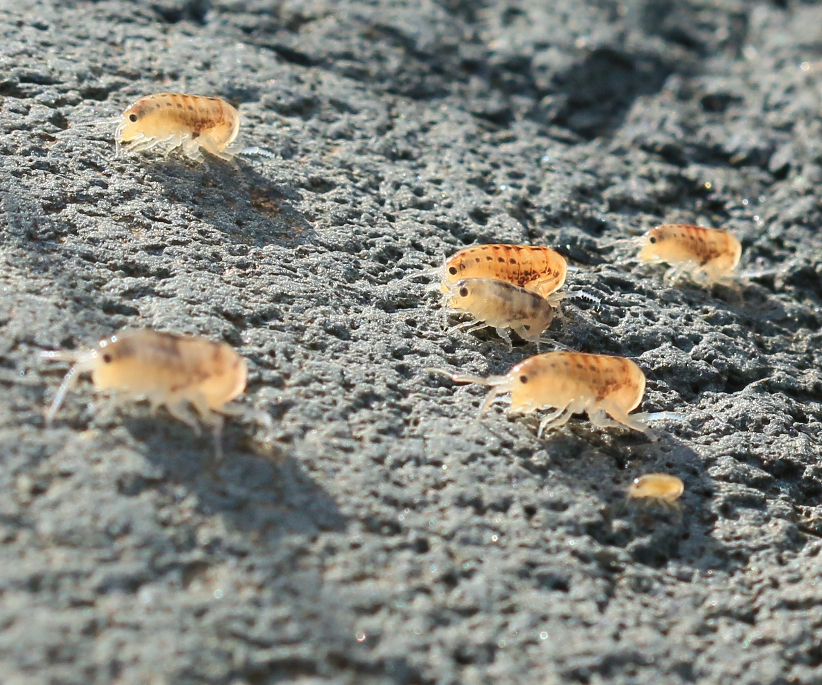 Sandhoppers- Commonly found on sandy beaches under rocks or seaweed above the high-water mark. They can also be found along the strandline amongst rotting weed. They are a staple food source for many seashore birds include Turnstone, Oystercatcher and Ringed Plover. They get their name from the leaping movement they use to propel themselves away from danger.