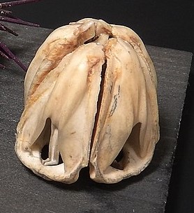 These are less common on Shetland beaches compared to the rest of the UK. They are from the Common Cuttlefish (Sepia officinalis) and can be up to 40cm in length. Cuttlefish are molluscs and members of the cephalopod family along with squid and octopus. The bone that is washed up is filled with gas and used to control buoyancy by adding or releasing the gas. As these bones float, they are easily washed onto beaches. They are made from calcium carbonate and have many uses including as a dietary supplement for birds and reptiles.