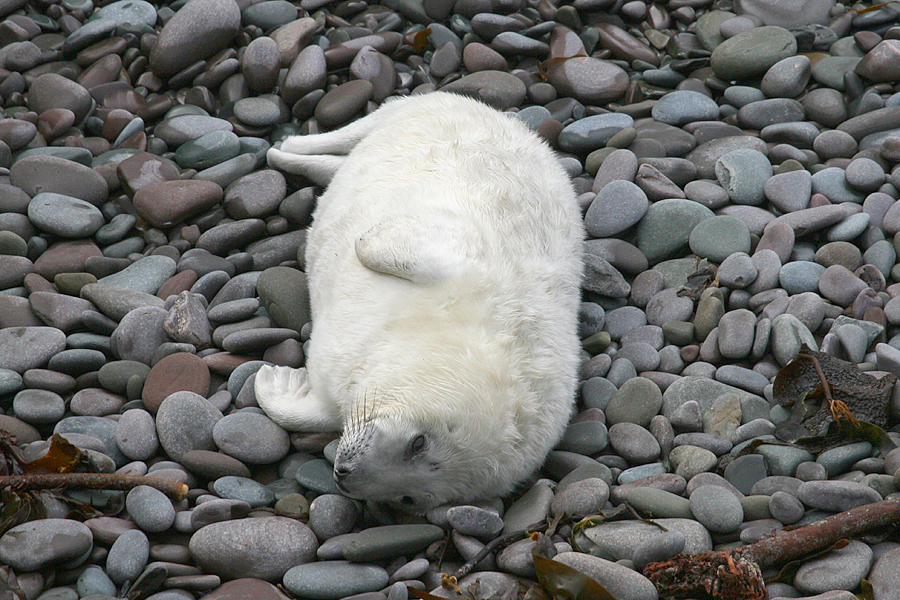 Grey seal pups are born on quiet, often remote beaches. The mothers haul themselves up onto the beach to give birth to their white fluffy young. The young will stay on this beach suckling their mother’s rich milk for around a month in which time they can put on 30kg in weight every 2 weeks. While the mothers are busy with their young, the male Grey Seals, who can weigh up to 300kg and grow to 2metres in length, stalk the beach fighting with other males to keep their territory and ‘harem’ of females. Once the females have finished suckling their young, they will mate with the dominant male before heading back to the sea leaving their pups alone on the beach. They will stay here for around another 2 weeks while they moult their white fluff and become brave enough to head out into the unpredictable winter seas.