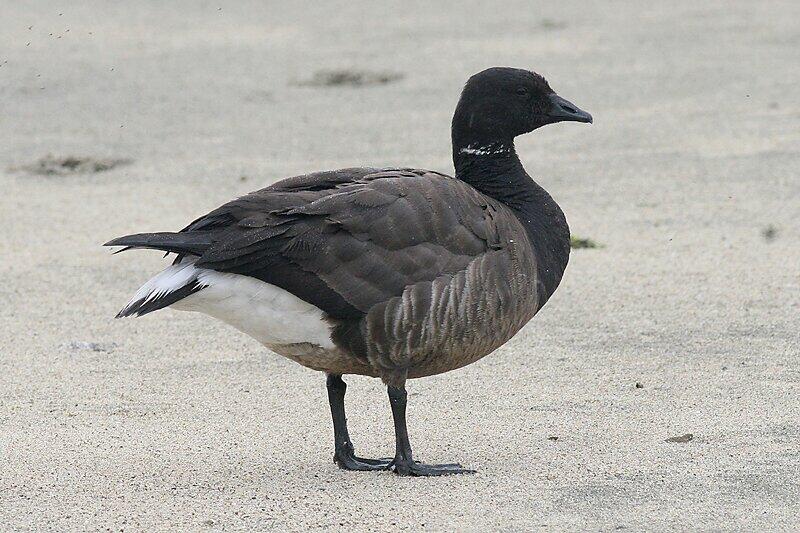 A very scarce migrant in Shetland with only a handful of individuals each year. Most commonly sighted in the winter months between September and April. Two subspecies occur, the Dark-bellied Brent Goose (B.b.bernicla) and the Pale-bellied Brent Goose (B.b hrota). The later is more commonly seen in Shetland.