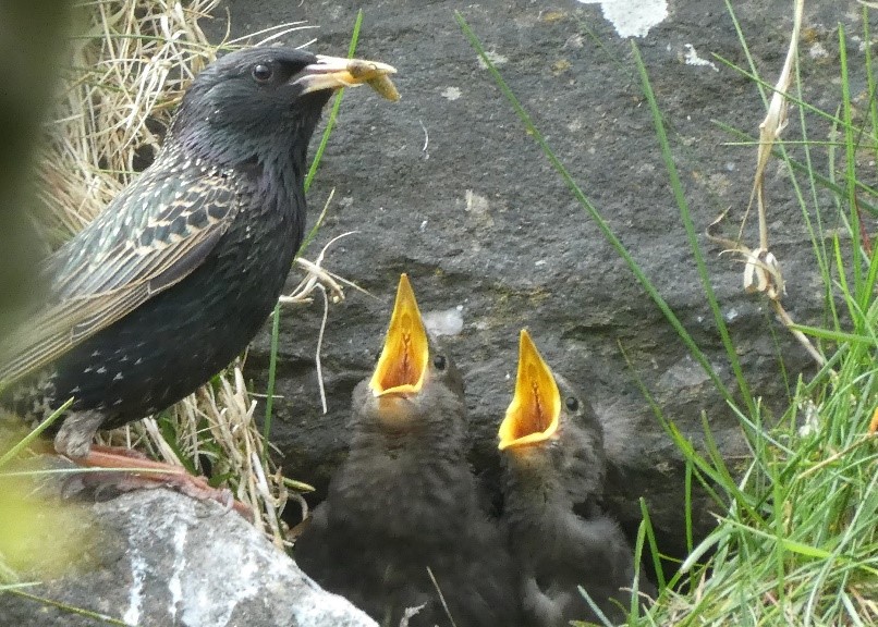 Starlings can live up to 5 years and usually produce 1 or 2 broods a year. However, their numbers are declining dramatically. Between 1995 and 2016 Britain’s breeding population crashed by 51%, though Shetland is still a stronghold. Parents are successfully rearing chicks, but these are failing to survive and thrive. There seems to be no single cause of this. However, laboratory studies suggest that pollutants such as anti-depressants & flame retardants in food and water badly affect starlings so it’s possible that these are reducing the fledgling’s survival rate.