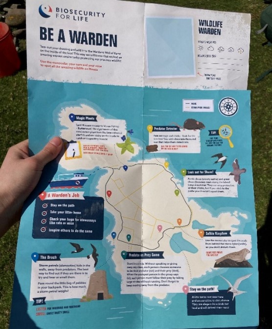 On Mousa in Shetland we now have our ‘Be a Warden’ trail set up and open. Here children (and of course adults!) can have fun learning about biosecurity and getting hands on with an RSPB warden’s duties for a day.
