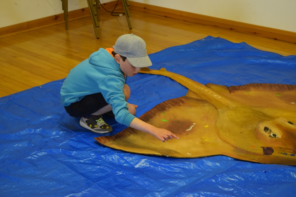 What a creative bunch you were too. Our life sized flapper skate looks amazing with all her spots and squiggles added by everyone how come along. She will be proudly displayed in the John Goodlad building at UHI Shetland’s Scalloway Campus.