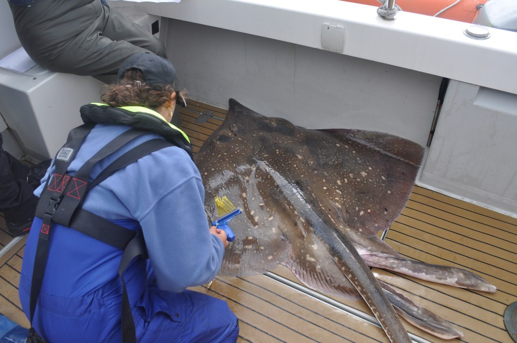 They will spend time tagging as many flapper skate as possible with the hope of receiving reports from commercial fishers and hobby anglers when a tagged skate has been recaught.